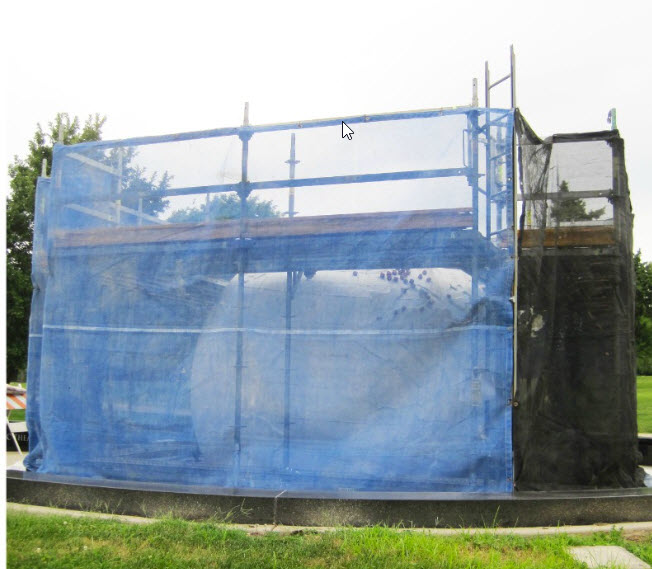 “It was challenging working on a round object, which was made easier with the use of scaffolding,” sauys Springfield Branch Manager Scott Haas. “We wanted to ensure that we kept the shape, profile and layout of the Globe exactly as the artist had intended. Taking our time through planning, chalks and pictures enabled us to accomplish that goal. It was an honor to be chosen to work on restoring a memorial from World War II. Through our efforts, this memorial will be protected and looking beautiful for many more years to come for people to visit and enjoy.”